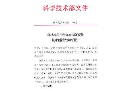 2022-07-20科技部關(guān)于舉辦2022年全國顛覆性技術(shù)創(chuàng)新大賽的通知